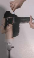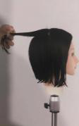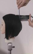 19.转角线以外的发量带到转角线空中的位置重叠修剪。