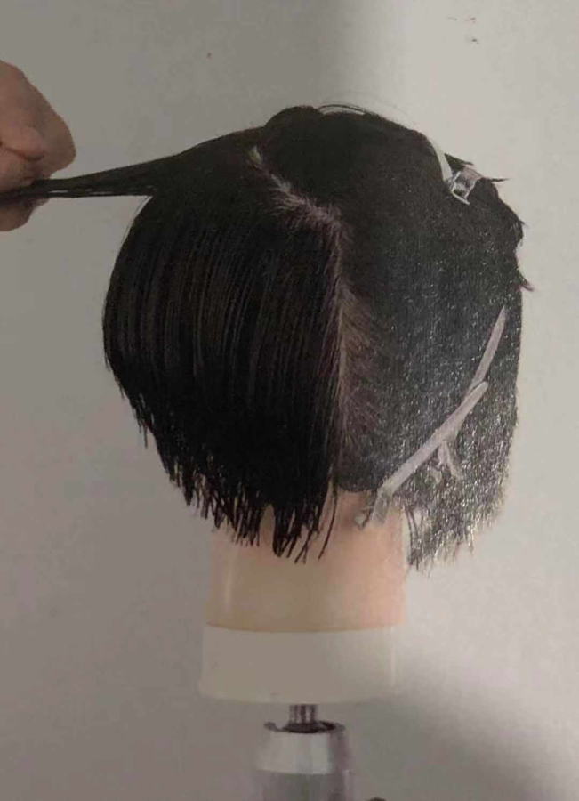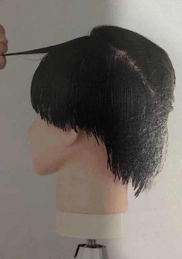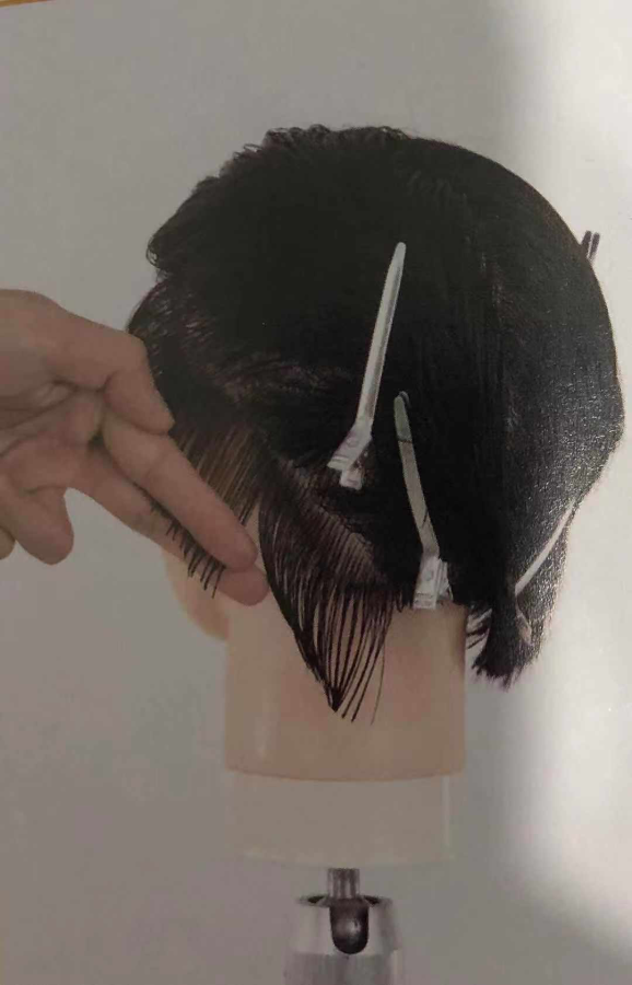 10. 跟随头型,由前向后,由高而低,做到剪切线与分界线平行。