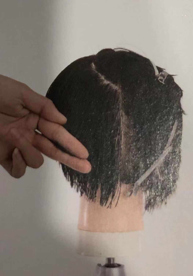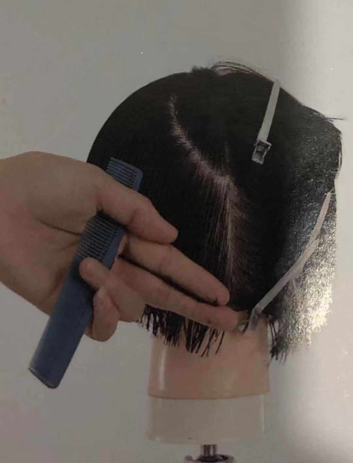 12. 跟随头型,做到剪切线与分界线平行。