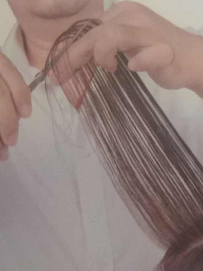 当需要修剪的发片较厚时,可分成2~3刀进行修剪。