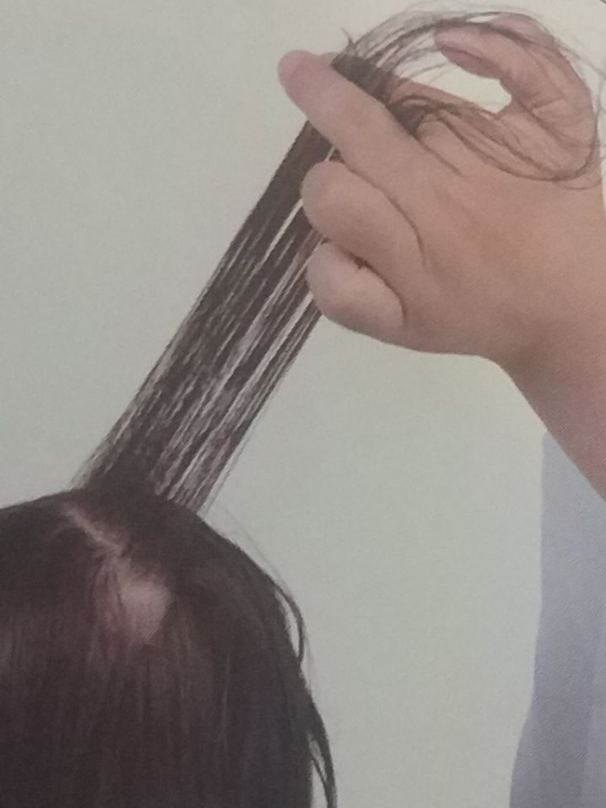 之后开始修剪左上发区头发,每次取上下宽度为1厘米的发片。