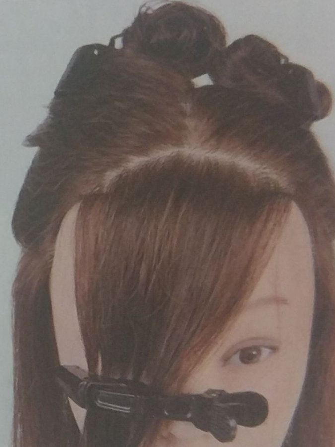 连接左右两个前侧点进行分份,分出刘海区后用鳄鱼夹进行固定。